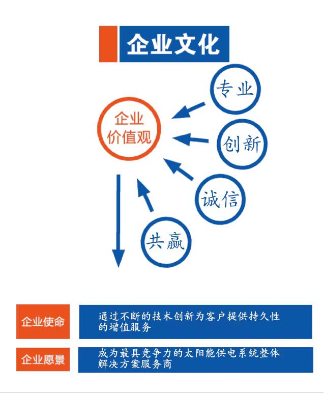 愿景:成为最具竞争力的太阳能供电系统整体解决方案服务商